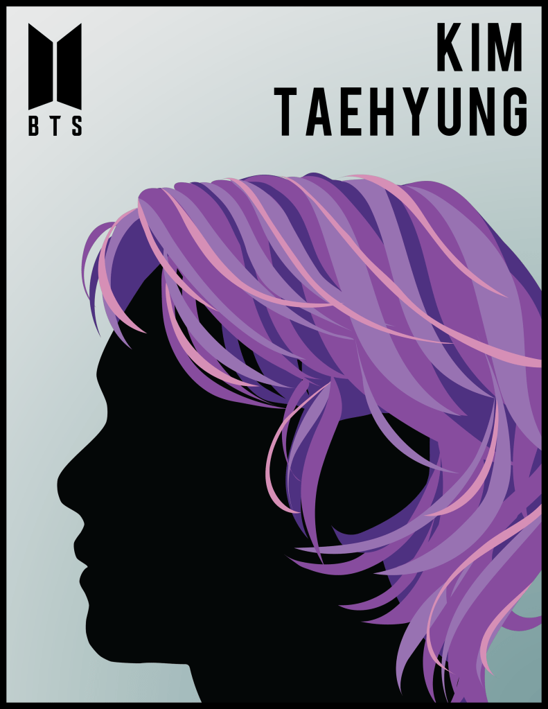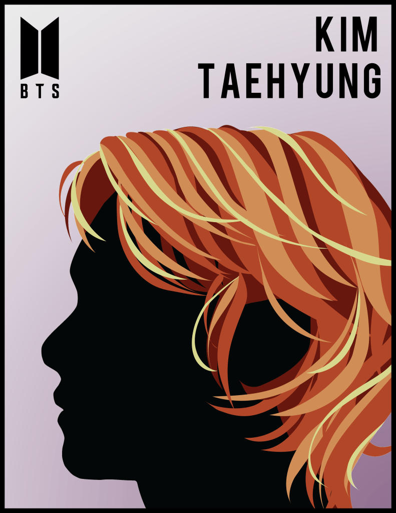 Milton Glaser was an American graphic designer famous for his illustrated posters and album covers. His distinct style of a side-profile face silhouette with whimsically designed and colorful hair has been featured in many publications. I chose to recreate that style myself. I selected Kim Taehyung, member of the internationally famous Korean pop group – BTS, as the main subject. For his hair, I was inspired by the elements – air, fire, and electricity, so I curated palettes suitable for each. In addition, I wanted the backgrounds to provide proper contrast, as well as provide a sense of cohesion and composition, so I added a gradient effect of complementary color.
